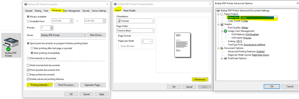 Emailing works in a similar manner to printing in that it sends the output with mapped data to a printer, then builds a message from there. In this case however the printer is an internal connection to Bullzip PDF which installs with Prodoc as a Windows Printer. If this is missing you can reinstall it from the \\[prodocserver]\ProdocApp\ location.